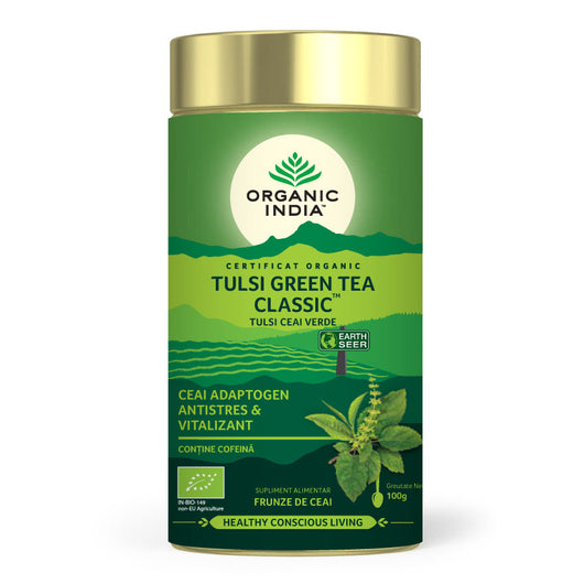 Ceai Tulsi (Busuioc Sfânt) cu Ceai Verde, Antistres Natural & Vitalizant, 100g ECO | Organic India