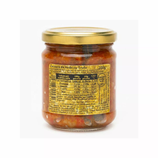 Zacuscă adevarată de Hribi cu trufe, făcută la cuptor cu lemne, de mâini muncitoare, fără conservanți, fără E-uri, fără coloranți sau aditivi alimentari.